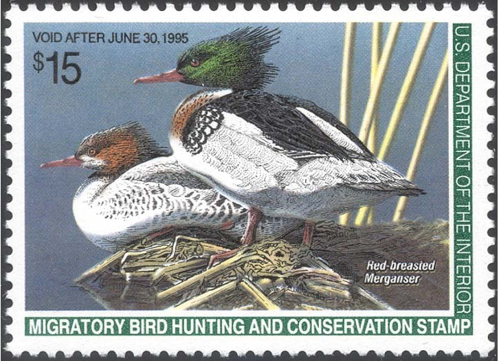RW61, $15.00 Red-Breasted Merganser Duck Stamp VF OG NH - Stuart Katz