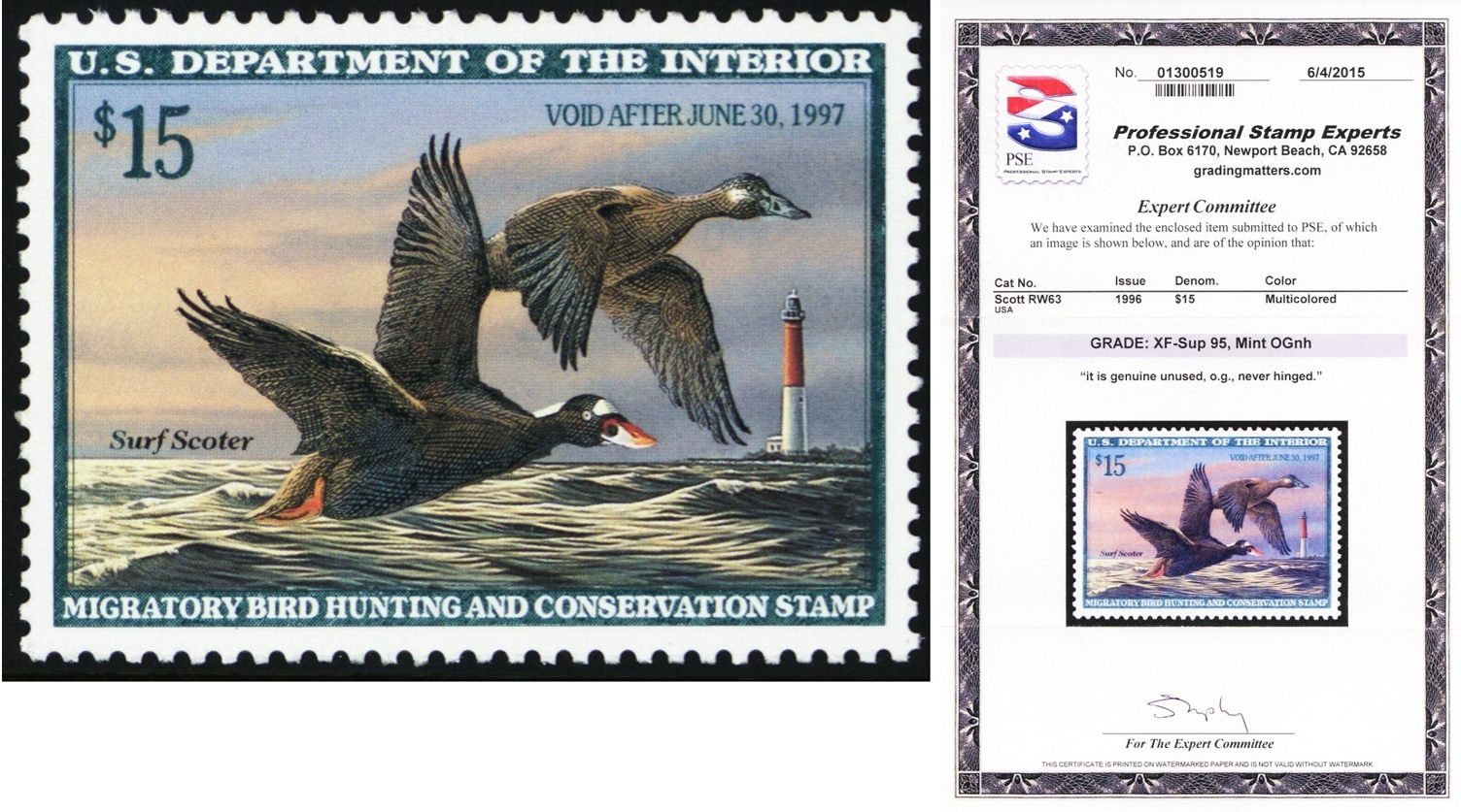 RW63, MNH XF/Superb $15 - With Graded 95 PSE Certificate - Stuart Katz