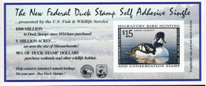 RW65A, $15 1998 Self Adhesive Pane, Mint NH