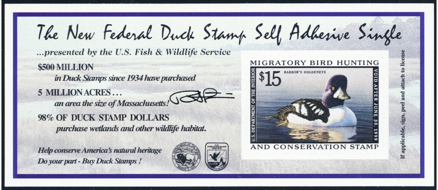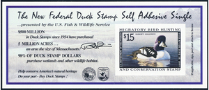 RW65A, Mint $15 Self Adhesive Pane ARTIST SIGNED - Stuart Katz