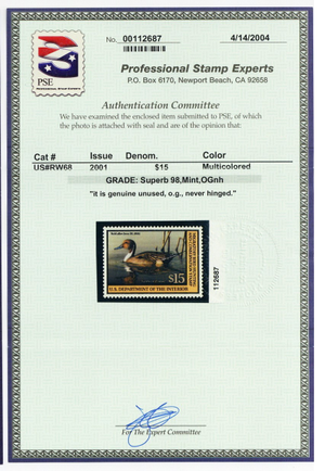 RW68, Mint Superb NH $15 Duck Stamp - PSE Graded 98 * Stuart Katz