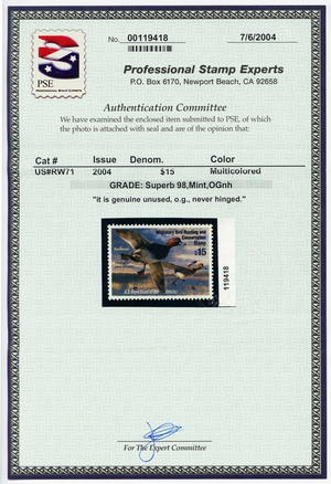 RW71, Mint Superb NH $15 Duck Stamp - PSE Graded 98 * Stuart Katz