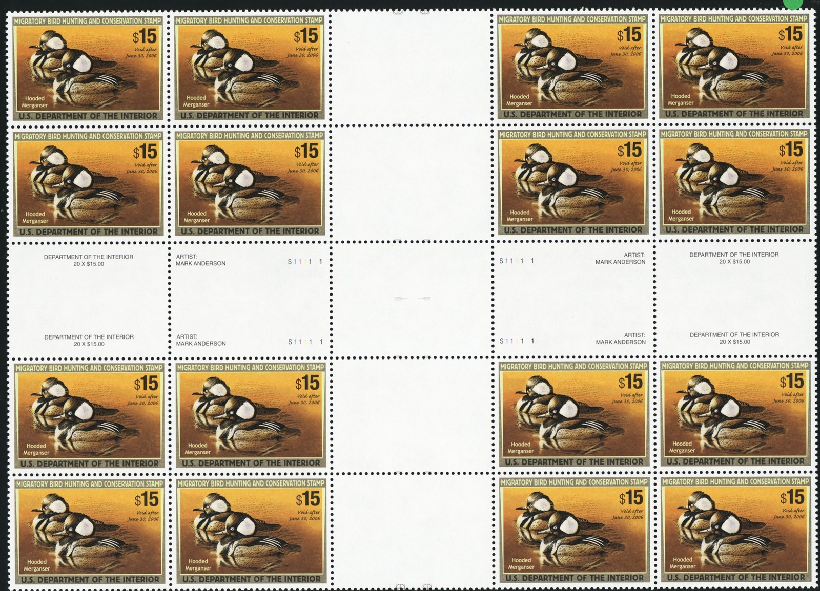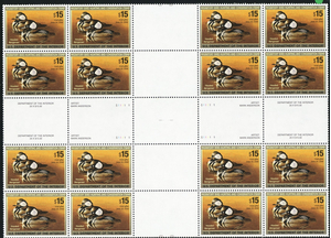 RW72, MNH $15 Duck Cross Gutter Block of 16 Stamps From Press Sheet Stuart Katz