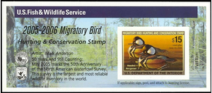 RW72A, $15 Hooded Manganser DUCK Stamp Self-Adhesive Pane - - Stuart Katz