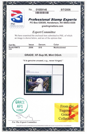 RW73, Mint NH XF/Superb $15 Duck Stamp - PSE Graded 95 Certificate * Stuart Katz