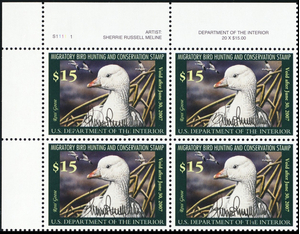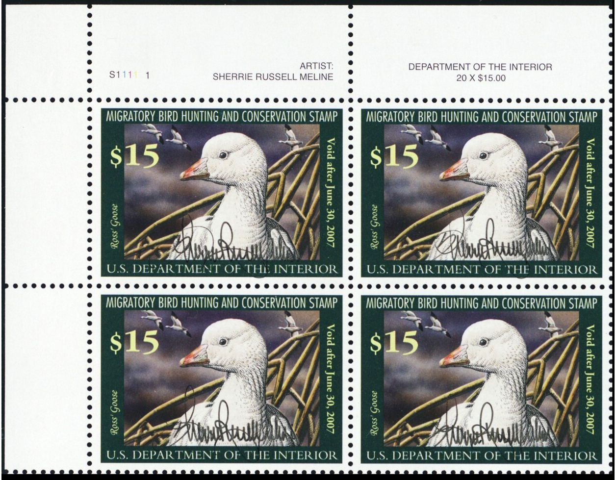 RW73, MNH $15 Duck Plate Block Artist Signed! Very Scarce! * Stuart Katz