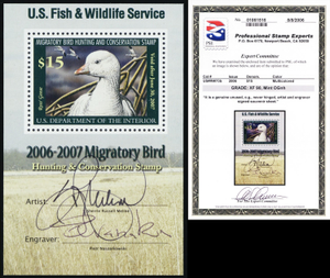 RW73b, MNH $15 2 Sigs Souvenir Sheet - Graded 90 PSE Certificate - Stuart Katz