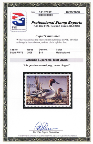 RW75, Mint NH Superb - PSE Graded 98 Duck Stamp * Stuart Katz