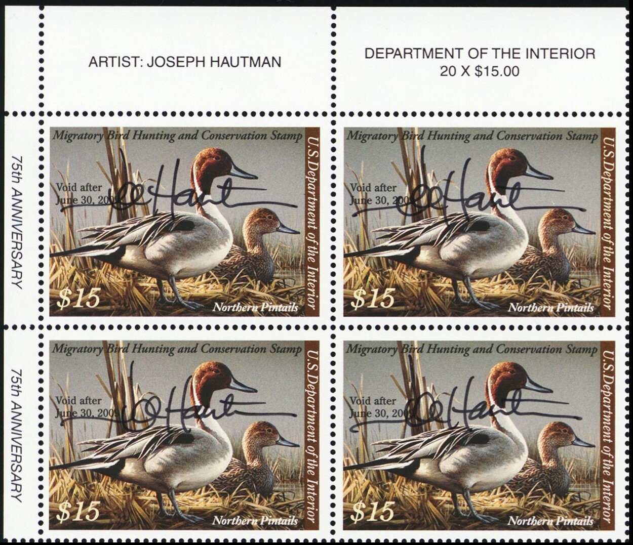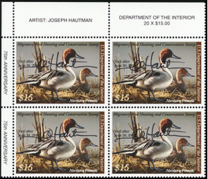 RW75, MNH $15 Duck Plate Block Artist Signed! Very Scarce! * Stuart Katz