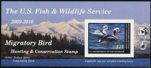 RW76A, $15 Long-Tailed DUCK Stamp Self-Adhesive Pane - Stuart Katz