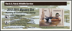 RW77A, $15 American Wigeon DUCK Stamp Self-Adhesive Pane - Stuart Katz