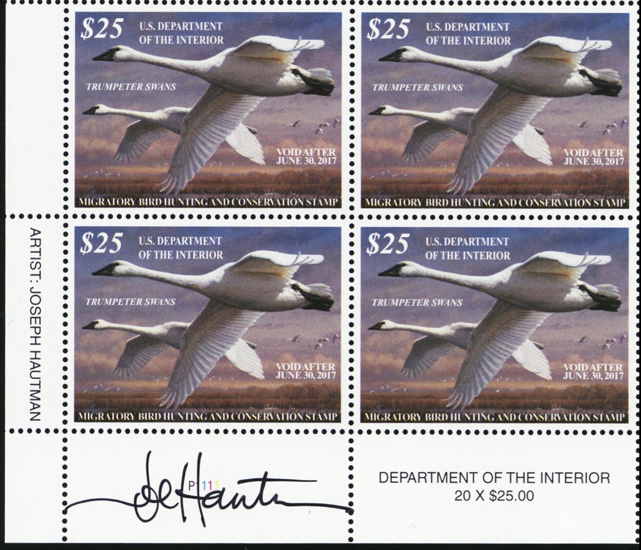 RW83, MNH $25 Duck Plate Block Artist Signed! Very Scarce! * Stuart Katz