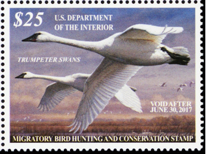 RW83, VF Mint NH 2016 Trumpeter Swans Federal Duck Stamp - Stuart Katz