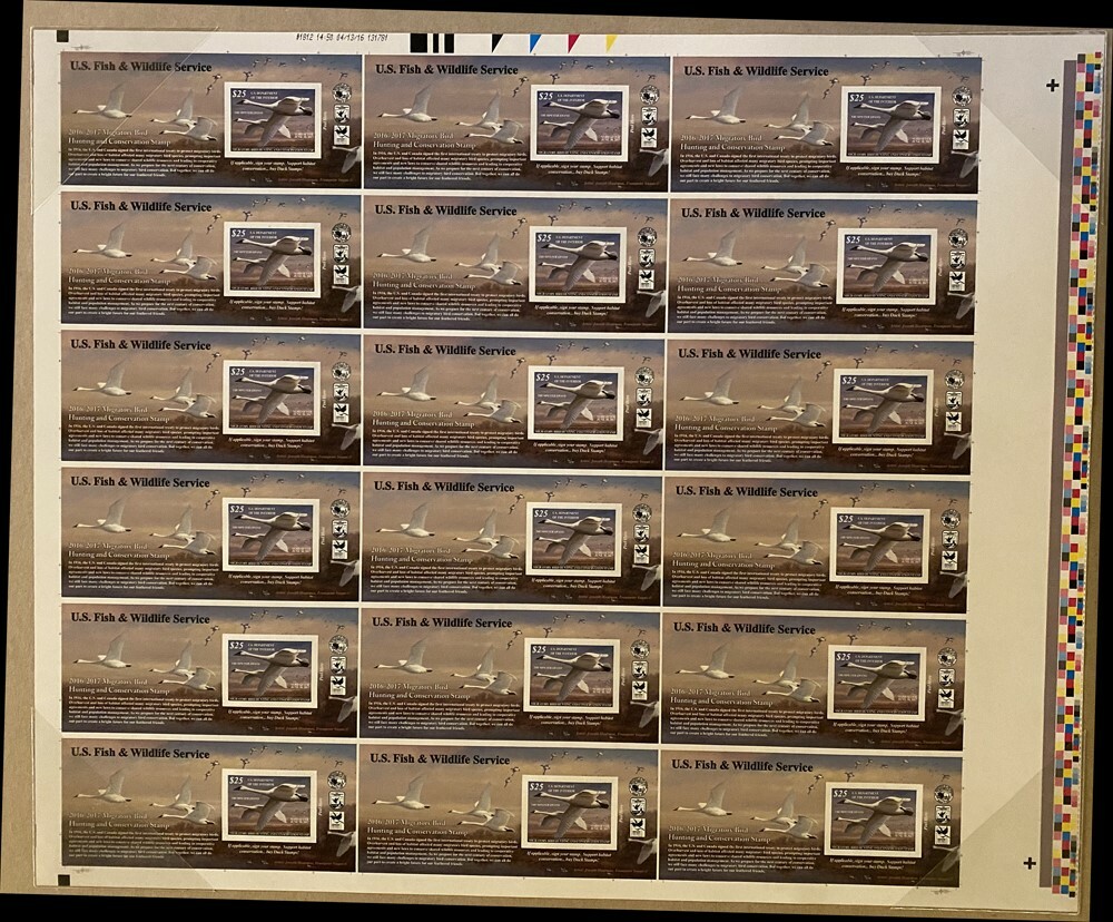 RW83a, RARE $25 Duck Press Sheet of 18 Self Adhesive Panes - Stuart Katz