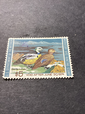 SCOTT RW40 1973 $5 STELLER'S ELDER DUCK STAMP USED NO GUM. Shipped with USPS Ground Advantage.