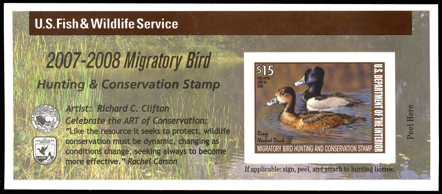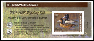 Scott RW74A Ring-Necked Duck Federal Duck Stamp Self Adhesive Pane - Stuart Katz