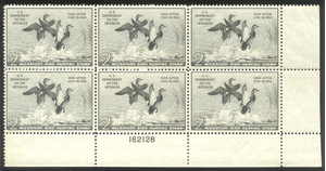 Scott #RW18: 1951 $2.00 Gadwall Ducks Centering & Condition: Mint. Fresh. Very Fine Plate Block. Reverse (Gum Side): Original gum. Never Hinged. Faults / Imperfections: None All invoices for multiple purchases will be sent after the last sale of the day. In many (but, not all) instances the combined postage quote will be LESS than the original postage quote total. The item pictured is the actual item you are bidding on, unless otherwise noted. You may combine purchases over the course of 7 days.If I have other items of interest to you in the coming week, please feel free to wait until those items end and I will combine all of your purchases in one invoice. Approximate Postage Quotes: All items will be mailed a day or two after payment is received. To see what other auctions I have currently going please click Here--------------------------------------------------------------------------------