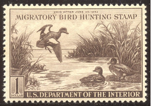 Scott #RW9: 1942 $1.00 Baldpates Centering & Condition: Mint. Fresh. VF/XF. Reverse (Gum Side): Original gum. Never Hinged. Faults / Imperfections: None The item pictured is the actual item you are purchasing, unless otherwise noted. I also offer an interest-free layaway plan. Ask me about it!" All items will be mailed a day or two after payment is received. --------------------------------------------------------------------------------