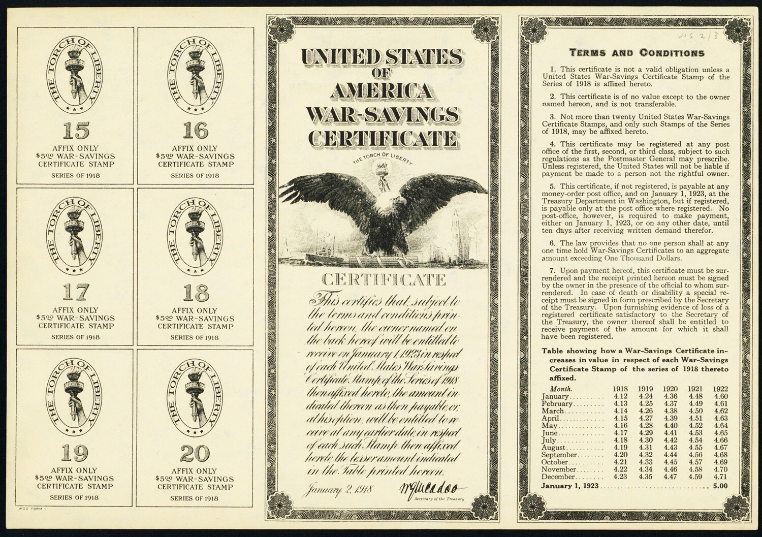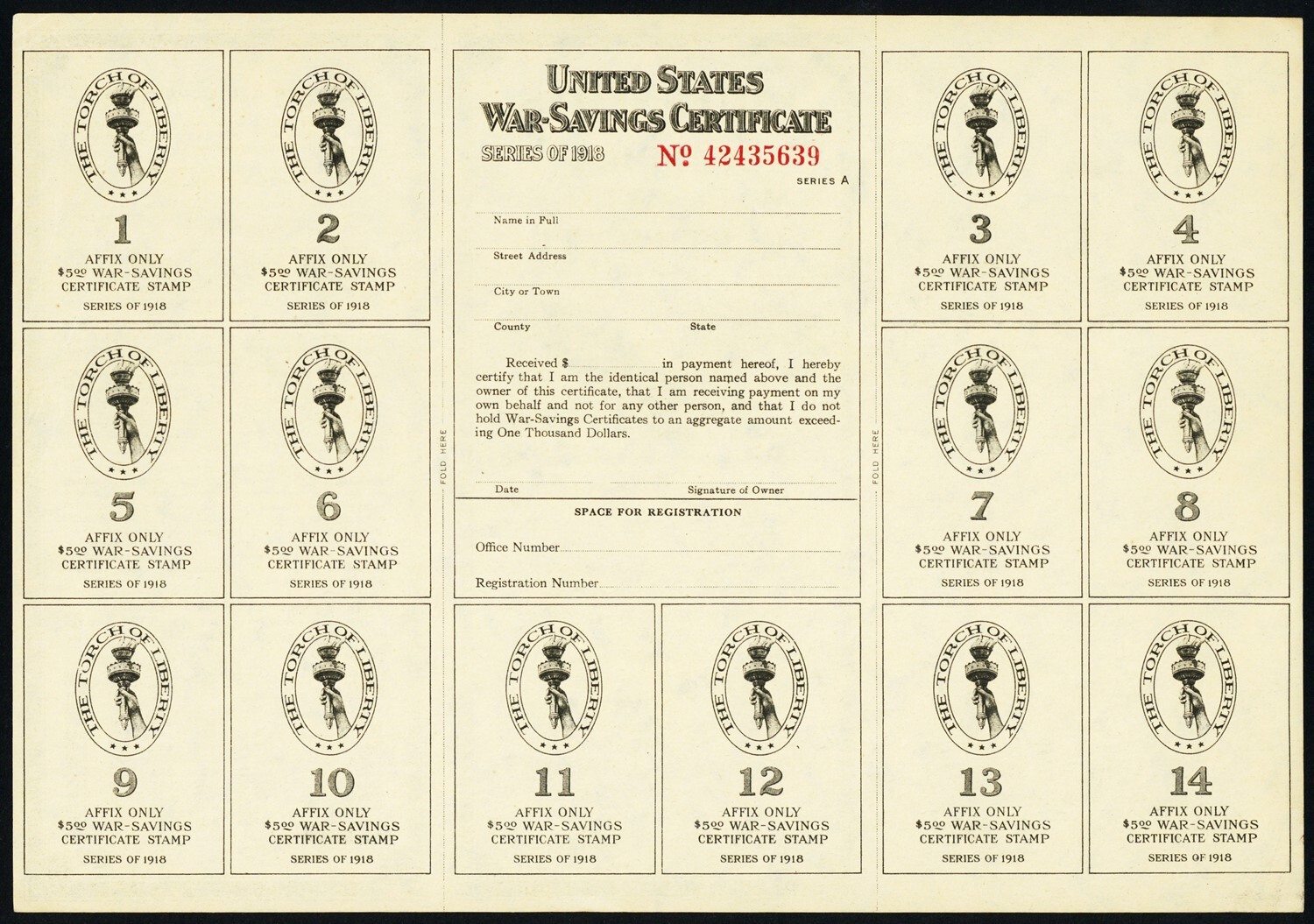 1918 Unused War Savings Certificate For WS2-3 Stamps * RARE! * Stuart Katz