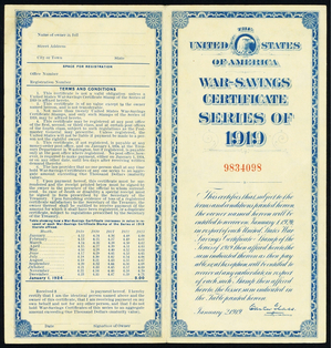 1919 Unused War Savings Certificate For WS4 Stamps * RARE! ** Stuart Katz