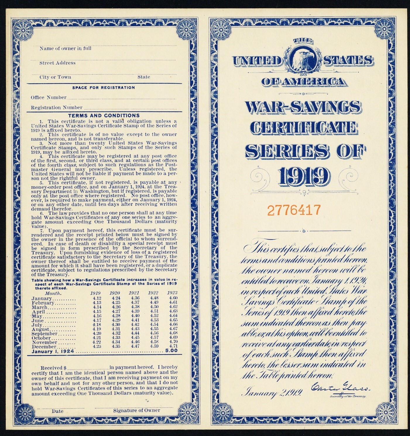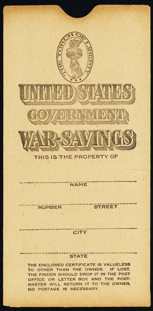 1919 Unused War Savings Certificate With Holder For WS4 Stamps RARE Stuart Katz