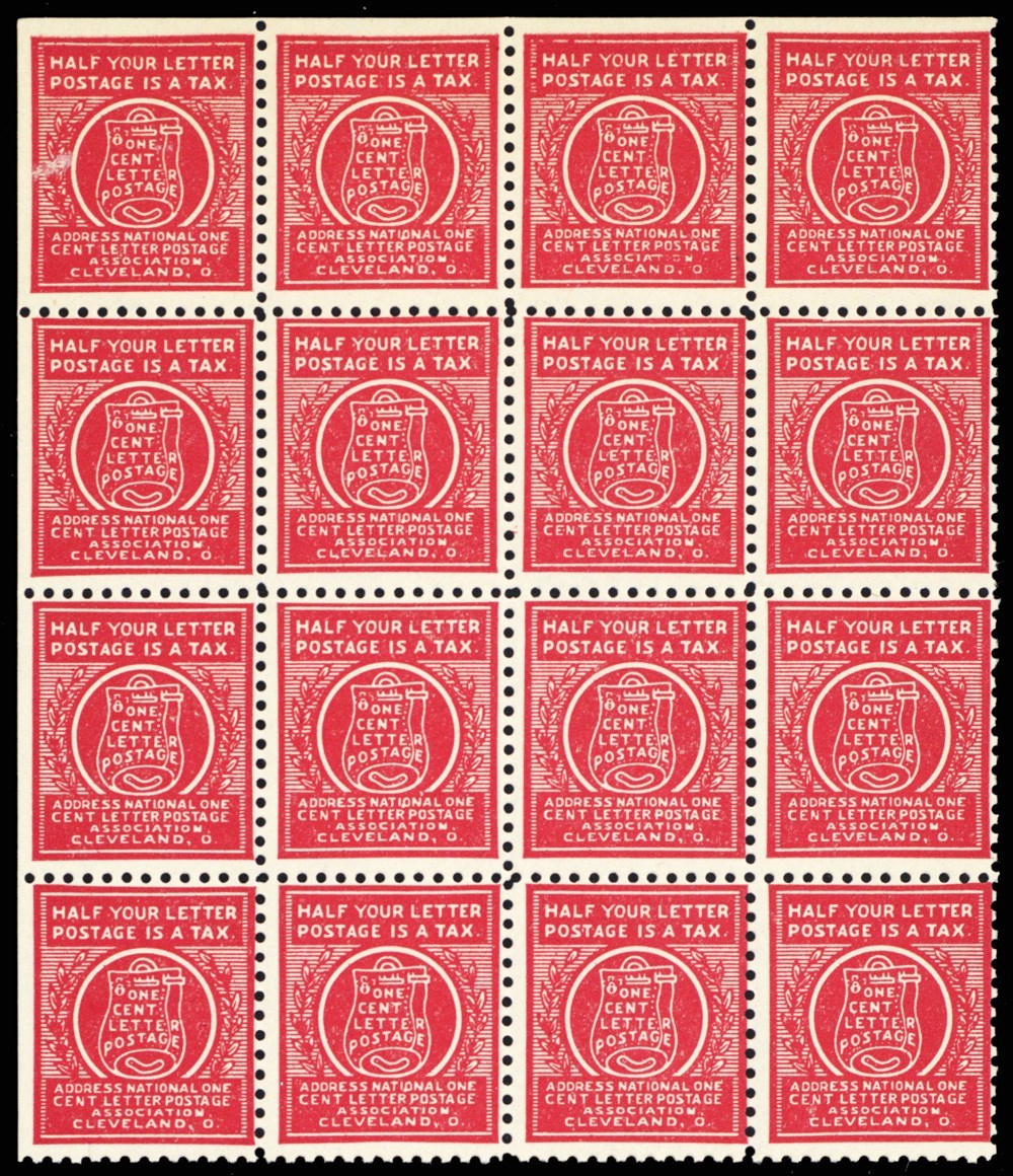 1920's Postage Production Test Block of 16 Stamps - Stuart Katz
