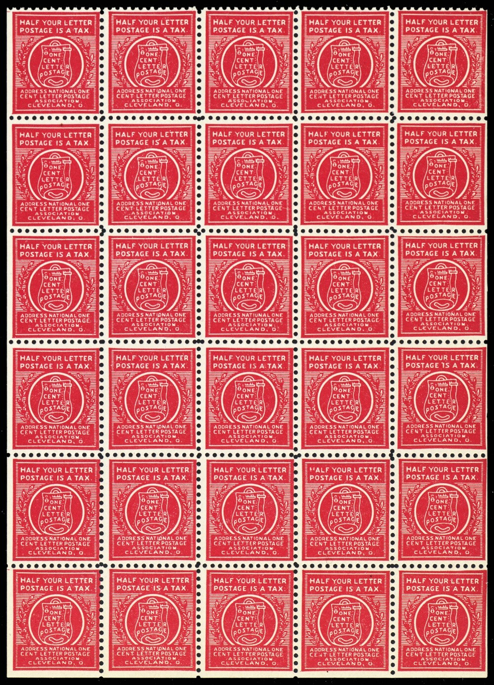 1920's Postage Production Test Block of 30 Stamps - Stuart Katz