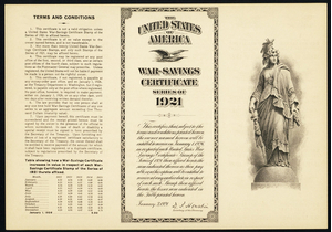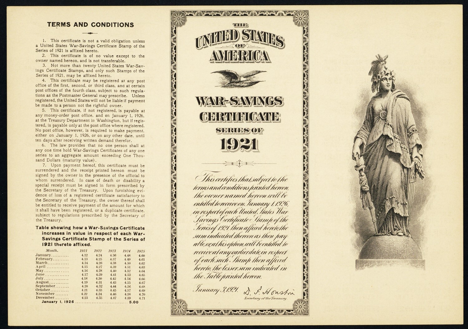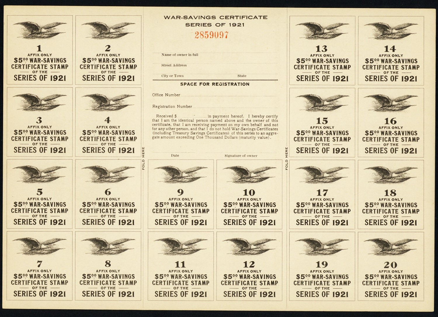 1921 Unused War Savings Certificate For WS6 Stamps * RARE! * Stuart Katz