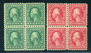 462-63, 1¢-2¢ Washington blocks of 4, NH, pencil ID on gum of 1 stamp, Scott$104