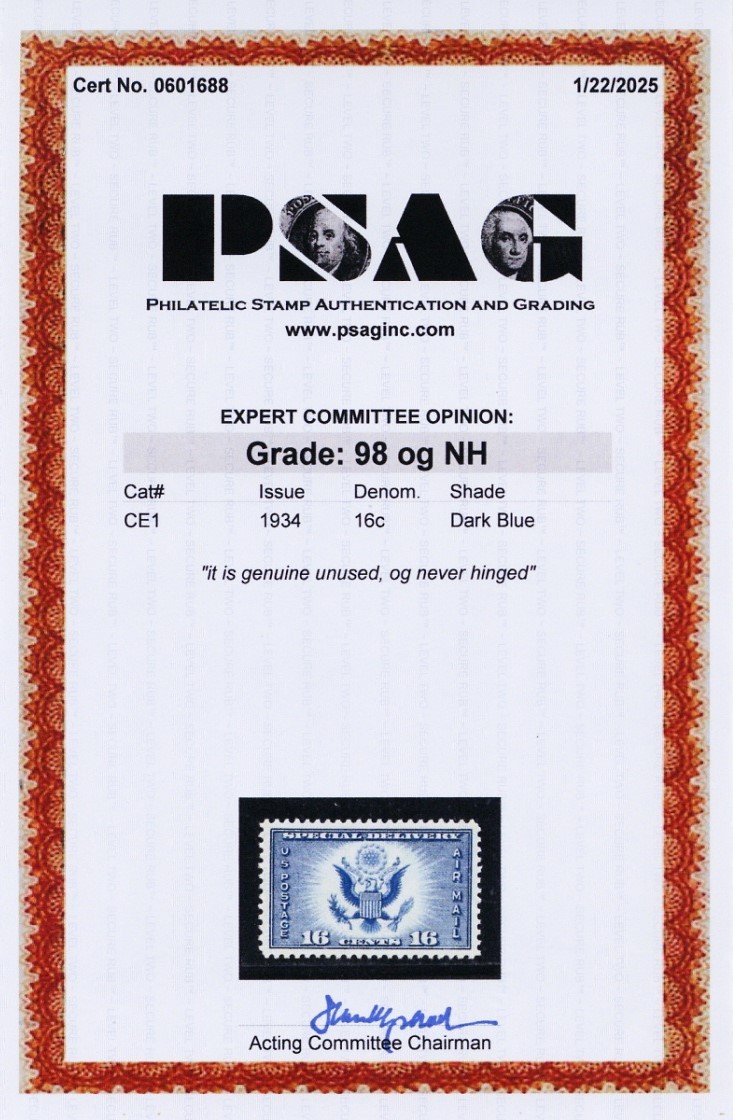 CE1, Mint Superb NH 16¢ With Graded 98 PSAG Certificate - Stuart Katz