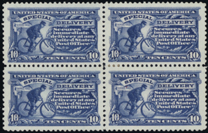 E11, Mint XF 10¢ "PINK BACK" Special Delivery Block of Four - Stuart Katz