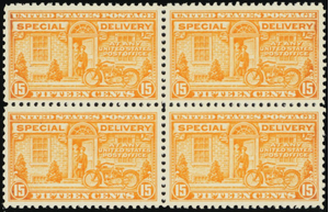 E13, Mint VF-XF NH 15¢ Special Delivery Block of Four Cat $300.00 - Stuart Katz