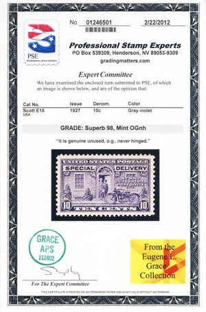 E15, Mint Superb NH 10¢ - PSE Graded 98 * Stuart Katz