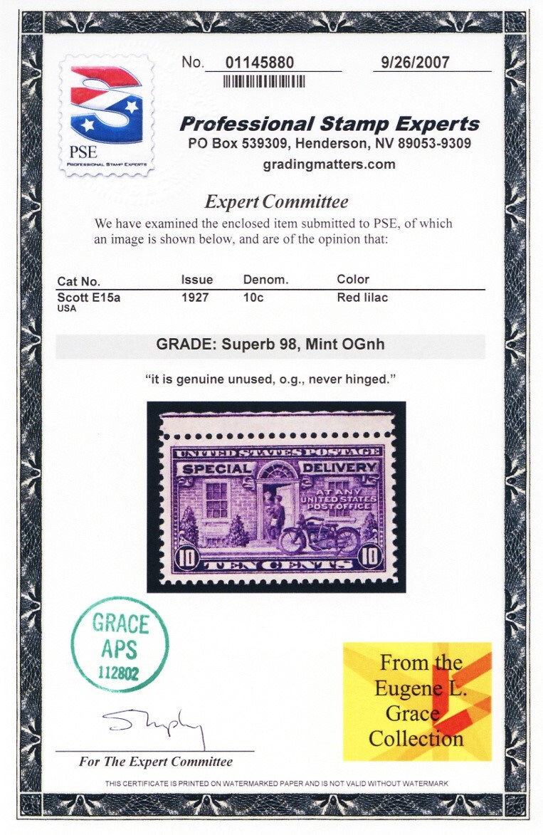 E15a, Mint Superb NH 10¢ - PSE Graded 98 * Stuart Katz