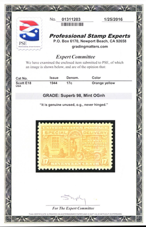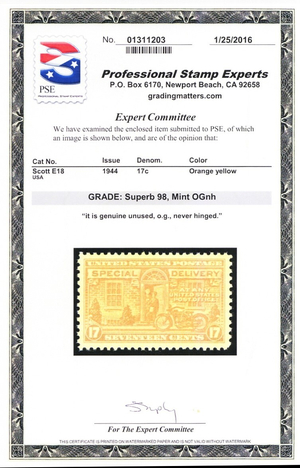 E18, Mint Superb NH 17¢ With Graded 98 PSE Certificate * Stuart Katz