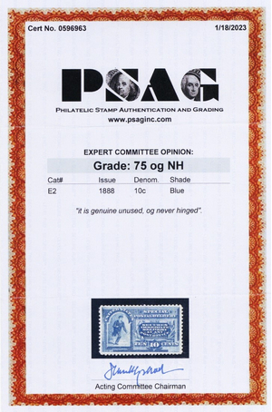 E2, Mint VF NH 10¢ - With Graded PSAG Certificate - Stuart Katz