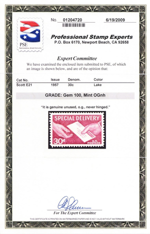 E21, Mint Superb NH 30¢ Graded 100 PSE Certificate - Stuart Katz
