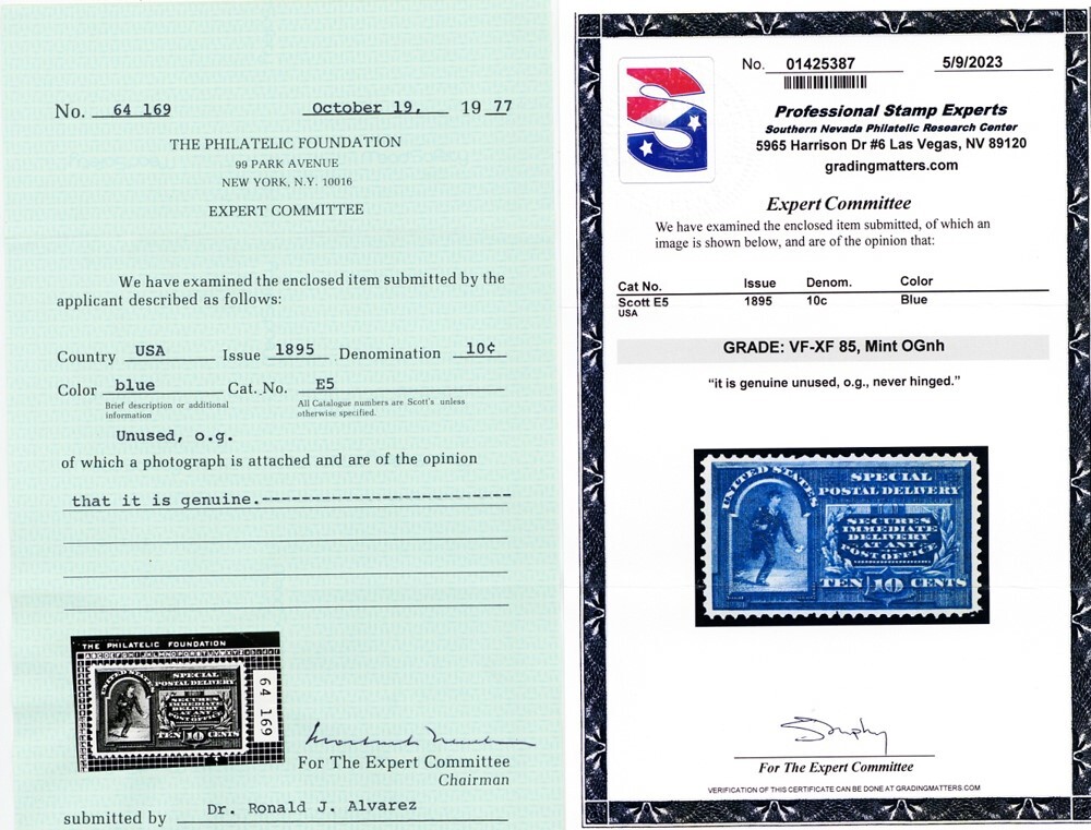 E5, Mint VF/XF NH 10¢ PSE Graded 85 Certificate - Stuart Katz