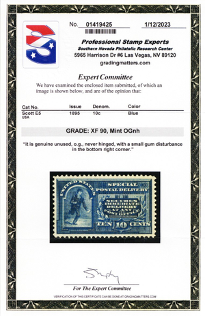 E5, Mint XF NH 10¢ With Graded 90 PSE Certificate - READ - Stuart Katz