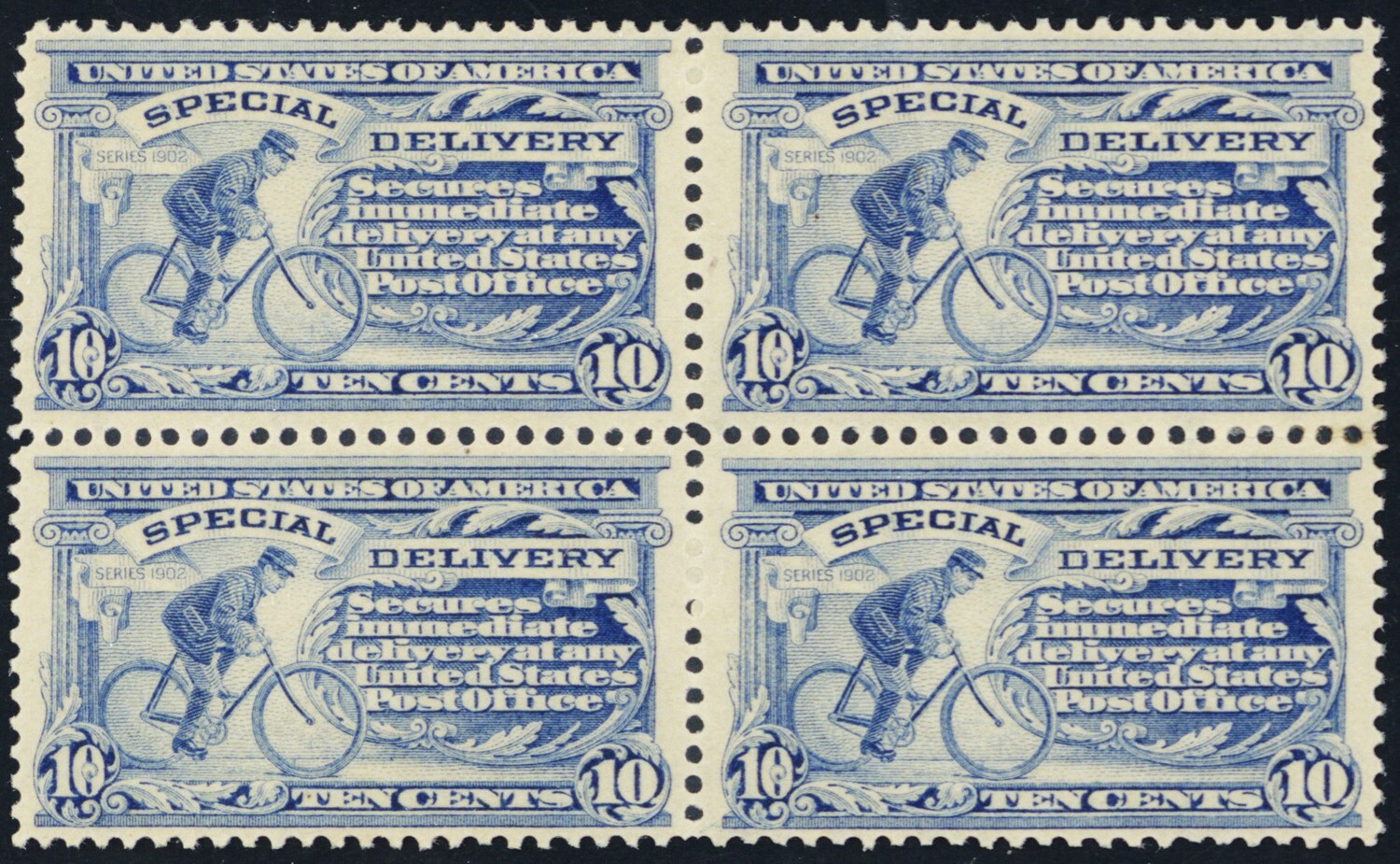 E6, Mint VF NH 10¢ Pristine Block of Four SCV $2000 * Stuart Katz
