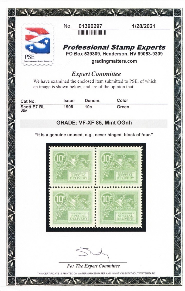 E7, Mint VF/XF NH 10¢ - With PSE Certificate -- Stuart Katz