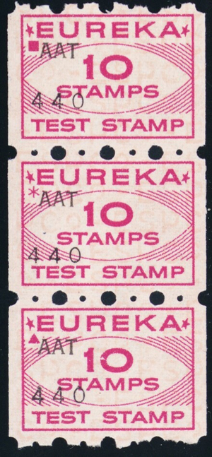 EUREKA Test Stamps Strip of 3 UNLISTED IN SCOTT - Stuart Katz