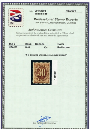 J20, Mint VF 30¢ Postage Due With PSE Certificate * Stuart Katz