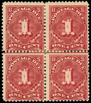 J38, Mint OG HR 1c BLOCK OF FOUR Postage Due Cat $65.00+
