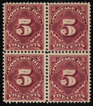 J41, Mint VF NH 5¢ RARE Block of Four SCV $1120 * Stuart Katz