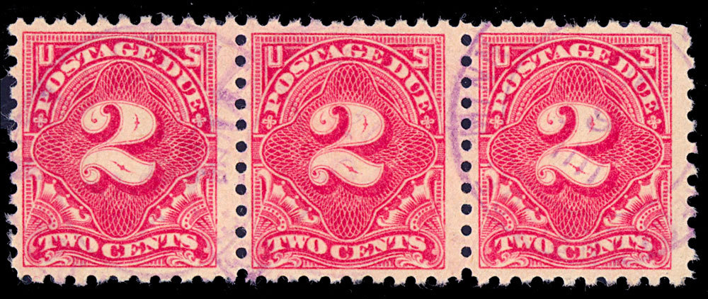 J60 Scarce Used Strip of Three Postage Due Stamps F-VF Cat $255.00 - Stuart Katz
