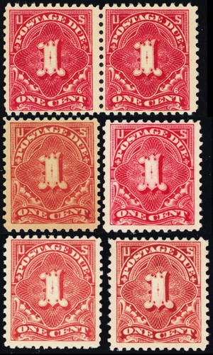 J61, Mint F-VF NH 1¢ SIX Postage Due Stamps CV $54.00 - Stuart Katz