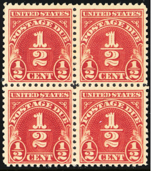 J69, Mint F/VF NH 1/2¢ - Postage Due Block of Four - Stuart Katz
