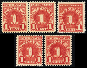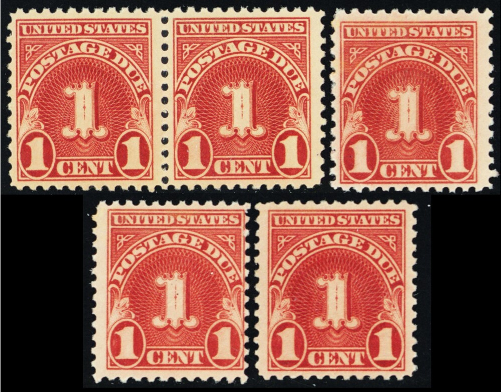 J70, Mint F-VF NH 1¢ FIVE Postage Due Stamps - Stuart Katz