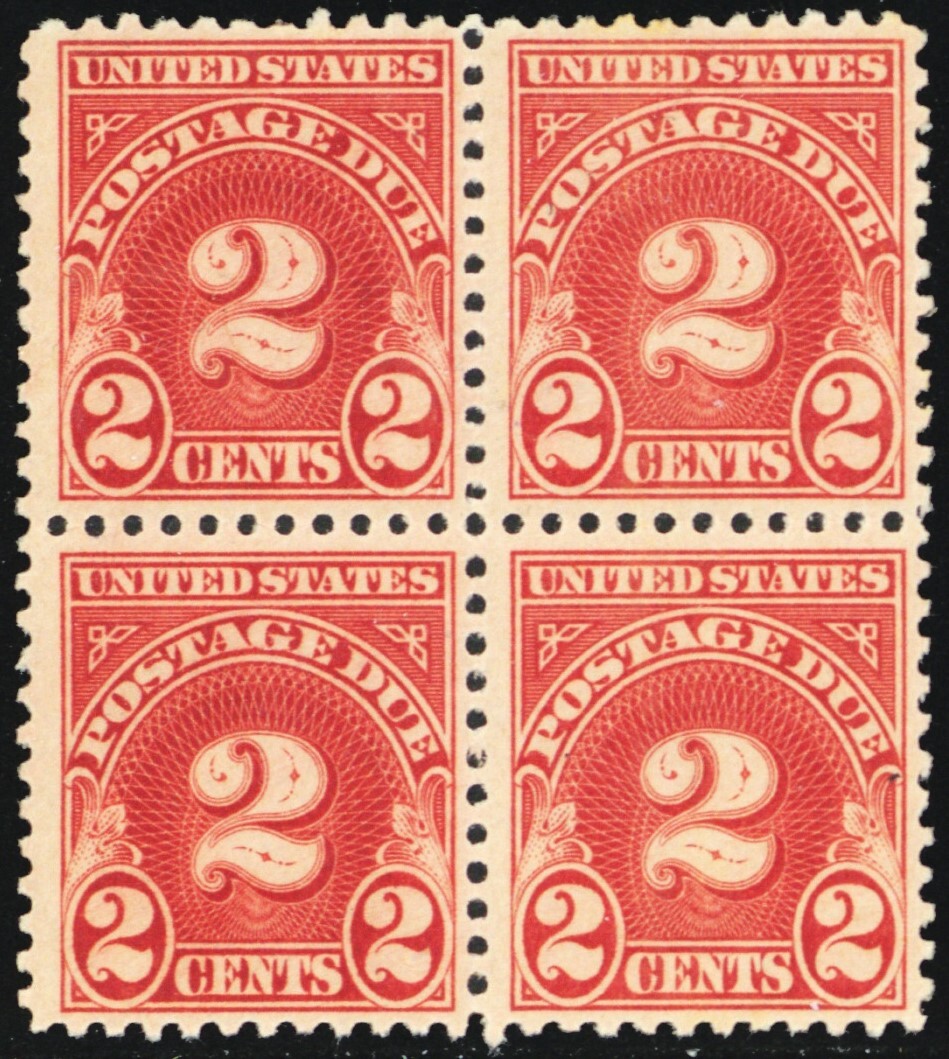J71, Mint F/VF NH 2¢ - Postage Due Block of Four - Stuart Katz